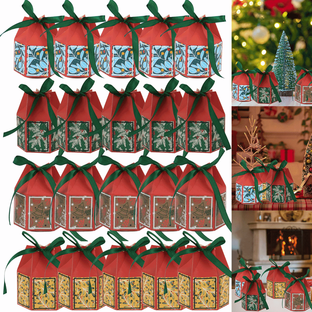 🎄Package Contents: 20PCS Christmas Paper Hexagon Gift Boxes with Ribbons each color for 5pcs